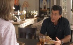 Storyline Summary: "Something's Gotta Give" is a delightful romantic comedy. Starring Diane Keaton as the beautiful, self-aware woman and famous play write, Erica Barry. Jack Nicholson plays Harry Sanborn, a 63 year-old rich music executive, incapable of finding a meaningful relationship with women closer to his age. He plans on spending a romantic conquest weekend dating Erica's daughter, 20-something Marin (Amanda Peet) at Erica's summer house when he suffers a heart attack. Paul plays Dave Klein, a play director and Erica's ex-husband and assistant. Complicating matters for Erica is the fact that Dave suddenly remarries a woman younger than their daughter. Paul gives a great supporting cast performance in his albeit too short a role. The film becomes a love triangle between Diane, Jack Nicholson and Keanu Reeves (Julian Mercer, Harry Sanborn's doctor). Mercer, a huge fan of all Erica and her plays, becomes smitten with her while treating Harry in the hospital ( very funny series of scenes, btw). Erica winds up caring for Harry in her home, an adventure that slowly turns into the two of them breaking down their barriers, getting to know each other and discovering their similarities.. all of which, of course leads them to love (the blood pressure scene is hysterical). Harry recuperates and leaves. Six months later, while at dinner with Marin, Dave and his fiance, she sees Harry with a young woman. She cries "this is what heart broken looks like"while grabbing his arms after confronting him outside the restaurant before retreating to her home. Using all this experience, she writes a fabulous play for Dave to direct! (The crying scenes are incredibly sad, heartbreaking, and comical all at the same time. Only Diane Keaton could achieve that!)
