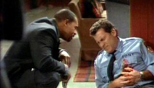 In the third part, "No More, Forever", meanwhile, Doc is silently suffering from post traumatic stress syndrome from September 11th. Determined to not let Steeper close the fire house, he steals a gun from a police officer at party that he gave the night before. An hour late for work, he shows up in his dress blues, informs Kim that he's not going out on the street today and, as the Capt. approaches him, he shoots him in the abdomen. Held at gun point, none of the crew is able to assist the wounded Captain. Doc wants the Captain to know what 15minutes feels like when you need help. Despite the pleas to assist by the crew, Doc continues to torment Steeper as he lay bleeding out on the floor of the firehouse explaining that "actions have consequences". Steeper try's to explain to Doc that he is not closing the house and that he wanted to get back in the field as he is tired of only doing paper work. When Carlos returns to the station, excitement stirs as he try's to approach the Captain. Doc tells Carlos he has 11 minutes left and pushes Carlos away from the him. Finally, unable to stand it, Carlos risks his life to attend to the Captains needs even as Doc shoots in the air to warn him against it. Kim and the others soon join Carlos in aiding Steeper who is still insisting in a pained, breathless manner that he is not closing. Doc begins to fall apart as he no longer has control of the situation and his plan is now ruined by their aiding the Captain before 15minutes is up. Meanwhile the SWAT team tries to take down Doc through a window when Sully (NYPD) rushes in and warns him. Carlos and Kim are now able to stabilize Capt. Steeper and rush him out into an ambulance. As he is taken to the hospital, Steeper is rambling on about all the funerals he attended after Sept. 11th, families he didn't know because he had been out of the field and that the numbers didn't match. He finally loses consciousness as he is comforted by his own acknowledgement that he "didn't die behind a desk". Fortunately, Steeper will recover. (Maybe next season we will see Capt. Steeper return?)