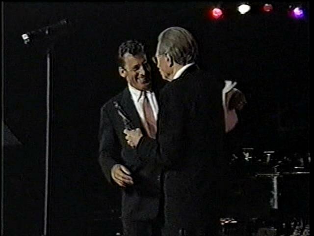 LARRY KING: There’s a gentleman who’s brought incredible awareness to the problem of AIDS. You remember him as Starsky of Starsky & Hutch (an audience member shouts “PAUL!”), but I know him as the husband of the late Elizabeth Glaser who died of AIDS. God it’s, since 1988, it’s like yesterday, yesterday. In her memory he started the Elizabeth Glaser Pediatric AIDS Foundation and we are proud to honor him. Ladies and gentlemen, Body Positive Life Time Achievement Award to Paul Michael Glaser!
