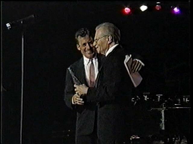 (Paul walks up to the stage from his table through guests standing and applauding in his honor) PAUL: (on stage reaching out and shaking Larry King’s hand)(to Larry..) Thank you and back to you.