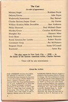 Production values are impeccable. The action unfolds on a gray all-purpose set excellently devised and lit by Gerry Harriton and Vicki Baral who have proved their worth to this theater more than once. Charles Berliner has designed wonderful “30’s” costumes in every combination of black and white to give us the feel of pre-war detective flicks. And the hero , of course, as Philip Diamond, the nearsighted dick who’s hired in the play within a play, to unravel the disappearance of – well, several people. No sense giving away the plot, particularly since it would be hard to do. Suffice it to say that the show becomes densely populated by cops, robbers, butlers (all played by Ray Stewart), one dowager, a secretary (well, two), libidinous forsaken wives, and Shanghai Sue, who can’t pronounce her “r’s and whose last name is Spivak. Charming nonsense, all of it, with our hero spouting such lines as, “Call it a hunch, call it plot expediency…..”’ Read the complete review. |