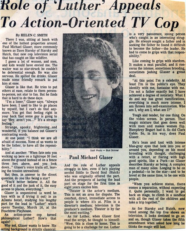 "Of the men, Paul Michael Glaser (lately of “Starsky and Hutch”) is a sharp deadpan, nearsighted Diamond in the rough, though the early joke about his refusal to wear glasses is mysteriously abandoned by the writer about halfway through the show."